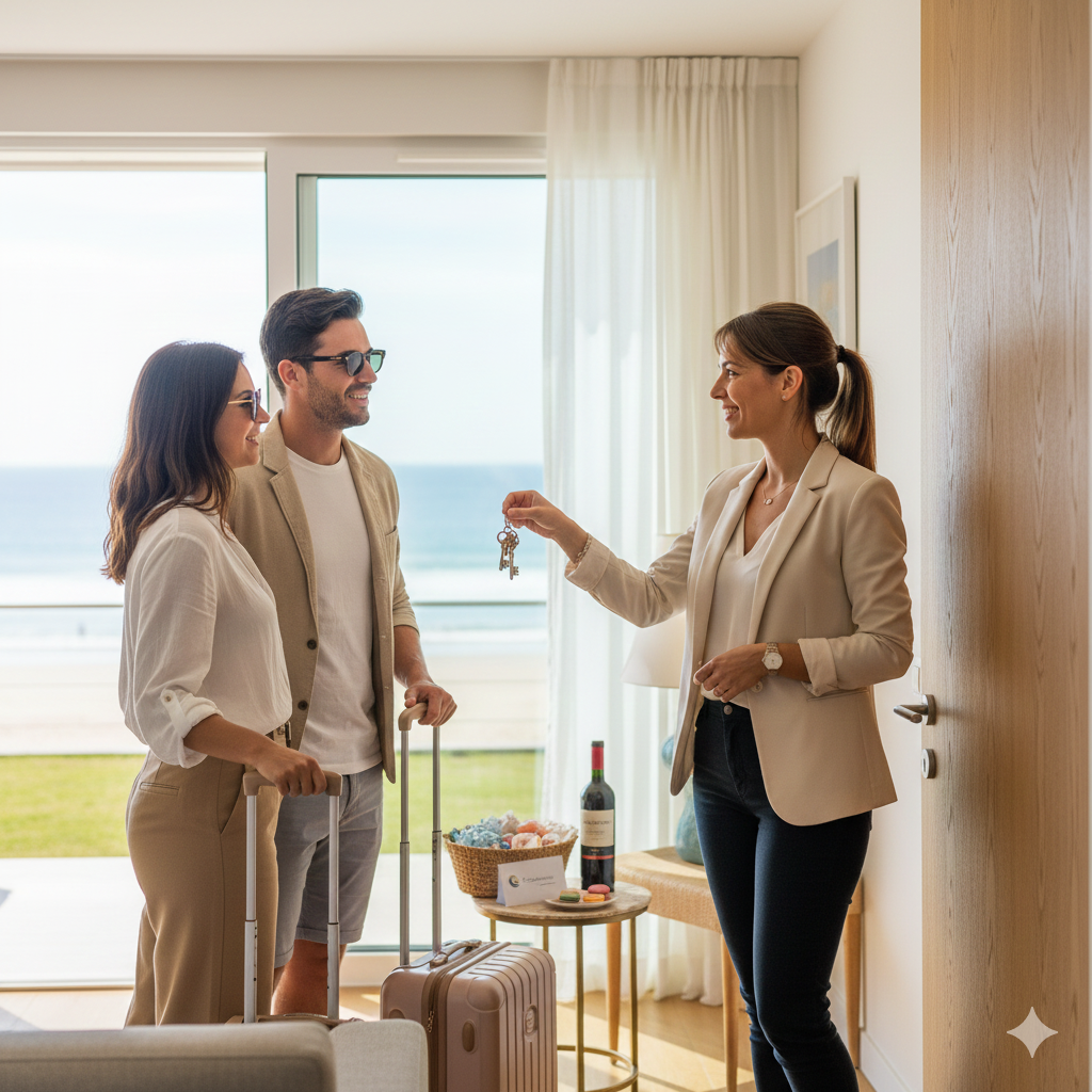 L’excellence de l’accueil sur le BAB. En plus de la gestion complète et de l’optimisation des revenus, nous accueillons personnellement vos voyageurs, assurant un état des lieux minutieux et une remise des clés en main propre.